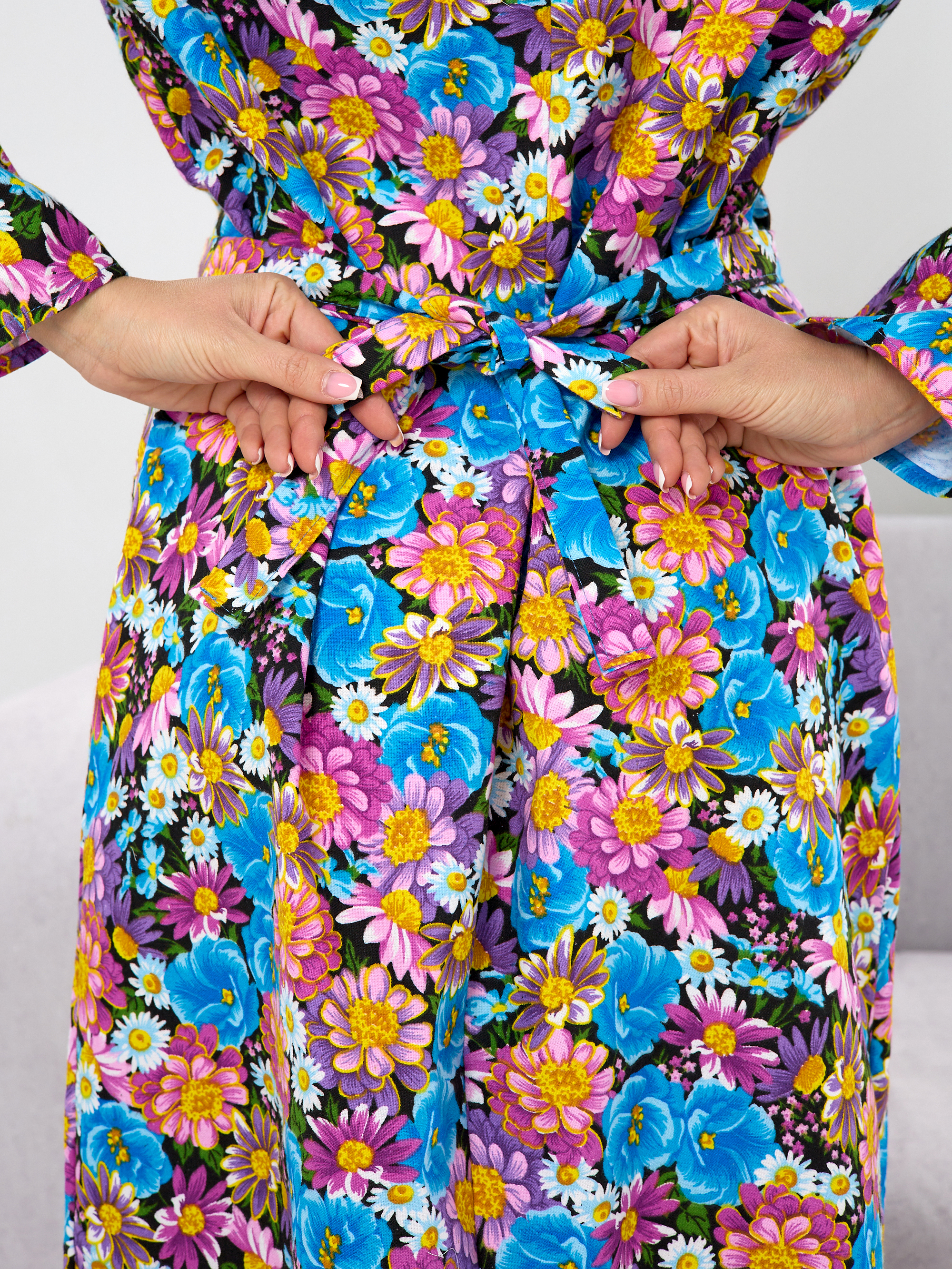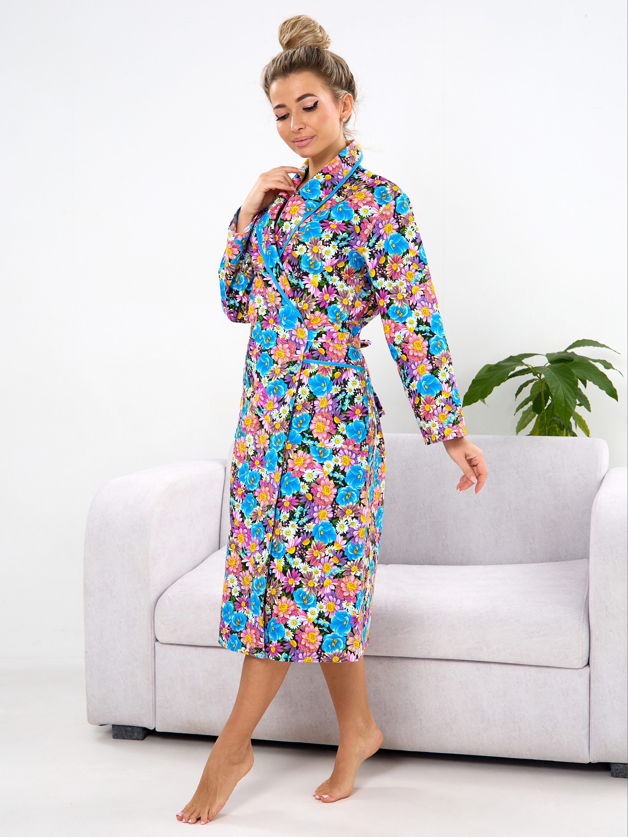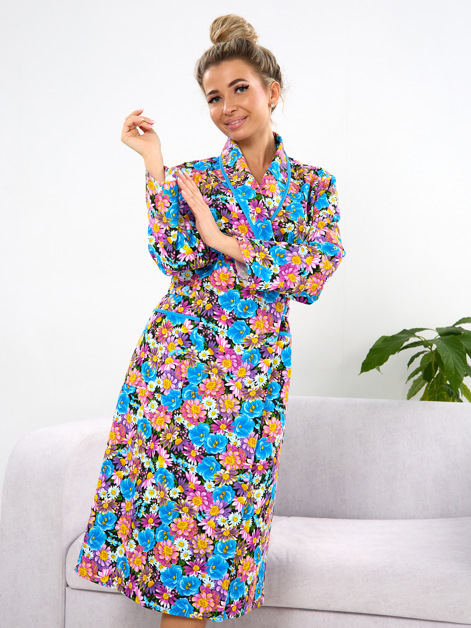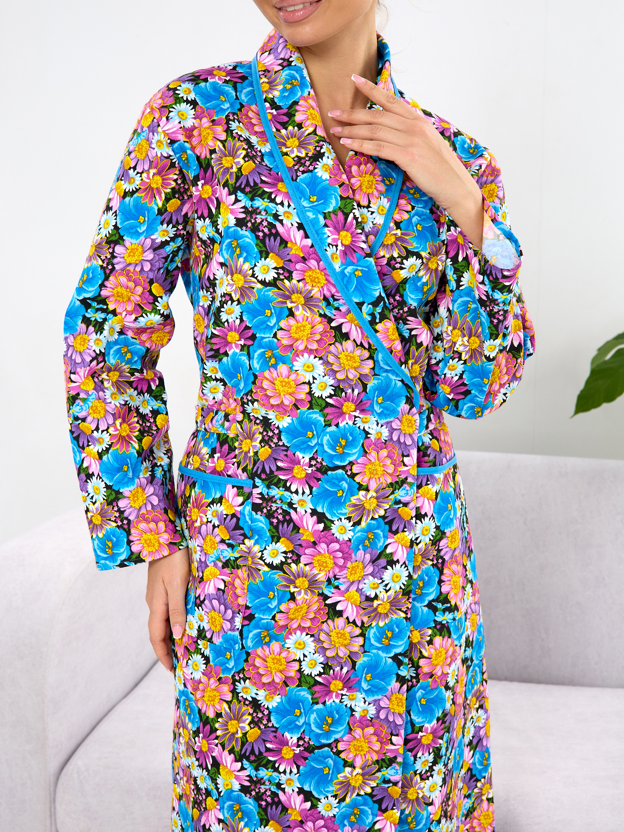 Женский домашний халат хлопок запашной теплый выполнен из мягкой дышащей ткани мягкой фланели.