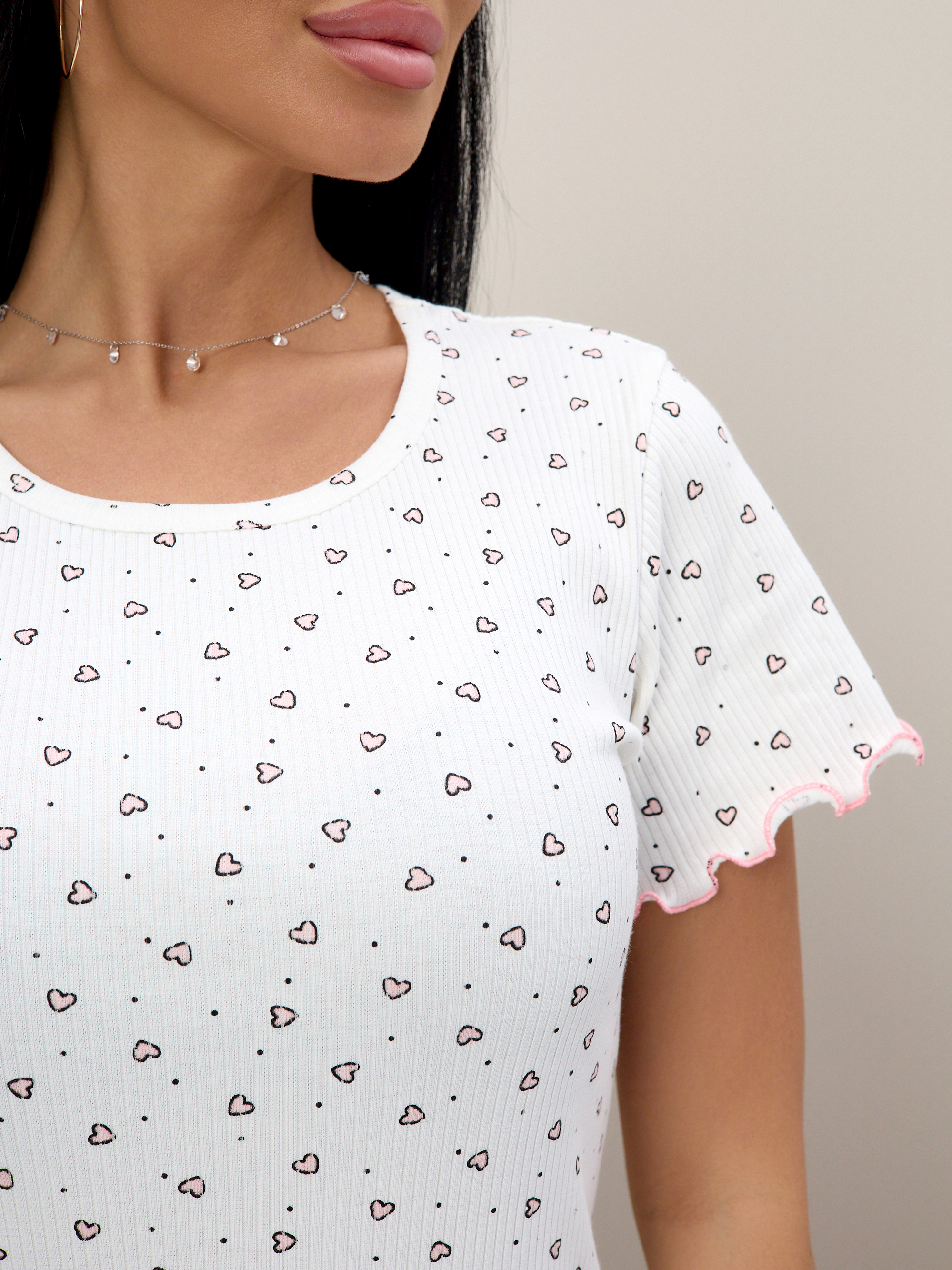 Ночная сорочка трикотажная с коротким рукавом в рубчик и   с разрезом.